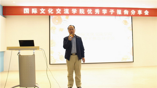经理武和平教授在总结时,从“一带一路”大背景下汉语国际教育专业的发展、前景等方面做了分析,希望一二年级同学“眼睛再睁大一点,视野再开阔一些,多看看外面的世界”、“把厚书读薄”、多参加实践,三四年级同学在考研、新疆支教以及参加海外汉语志愿者等方面合理定位,积极准备,让每一位同学的理想和目标更顺利的实现。