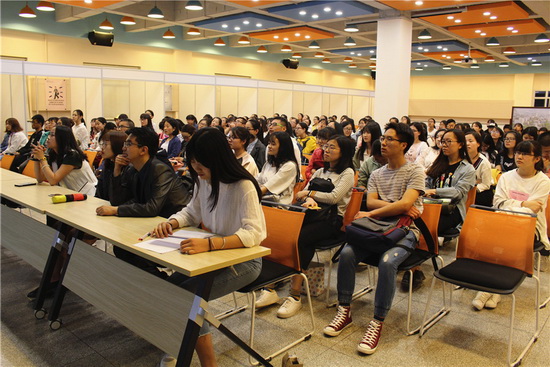 5月17日晚,学院优秀学子经验分享报告会在老员工活动发展中心101室举行。报告会邀请2015级汉语国际教育硕士研究生赵孟超、2013级优秀本科生刘玉彬、张璐婷作报告,与大家分享自己的成长历程。学院一、二、三年级全体本科生200余人参加报告会。报告会由团委书记罗长凤主持。