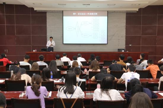 报告会上,周庆生教授分别从中亚东干族族源、历史、分布、民族、语言等几个方面的分析,说明了东干族语言复杂的缘由,并使用冲突-适应理论来解释处于中亚异域文化包围中顽强生长得中华文化现象。他分析了国内相关研究的现状,强调了在研究问题时需要注重创新,并以本课题为例,说明创新研究的重要性。
