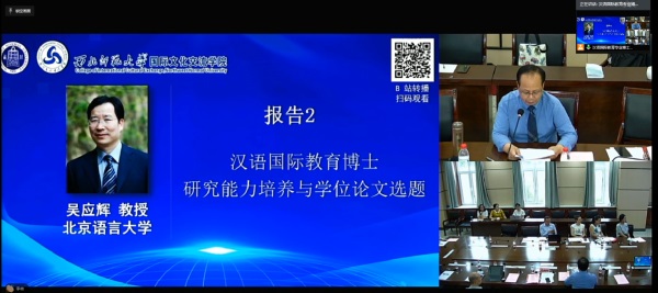 7月11日,w88优德官网成功举办“汉语国际教育专业博士培养”在线论坛,北京大学对外汉语教育学院赵杨教授、北京语言大学汉语国际教育研究院吴应辉教授、华东师范大学国际汉语文化学院叶军教授及浙江师范大学国际文化与教育学院王辉教授应邀在论坛作主旨发言。四位专家学者围绕“汉语国际教育专业博士培养”这一主题,从不同的视角与大家分享了自己的观点。