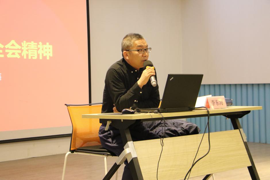 宣讲会上,李东海紧紧围绕十九届五中全会的主要内容和精神,以甘肃脱贫攻坚的重大成果和我国发展面临的国内外环境为例对对会议的背景、“十三五”期间的成就进行了概述,并对到二〇三五年基本实现社会主义现代化远景目标、“十四五”时期经济社会发展的6项“新”目标,以及全会提出的12项举措进行了详细解读。对于青年老员工如何践行十九届五中全会精神,李东海就汉语国际教育专业实际出发,提出要建设文化教育强国,传播中国文化,就要把握国家的发展机遇,不断提升自身文化素养和知识储备,成为汉语语言文化传播的使者。